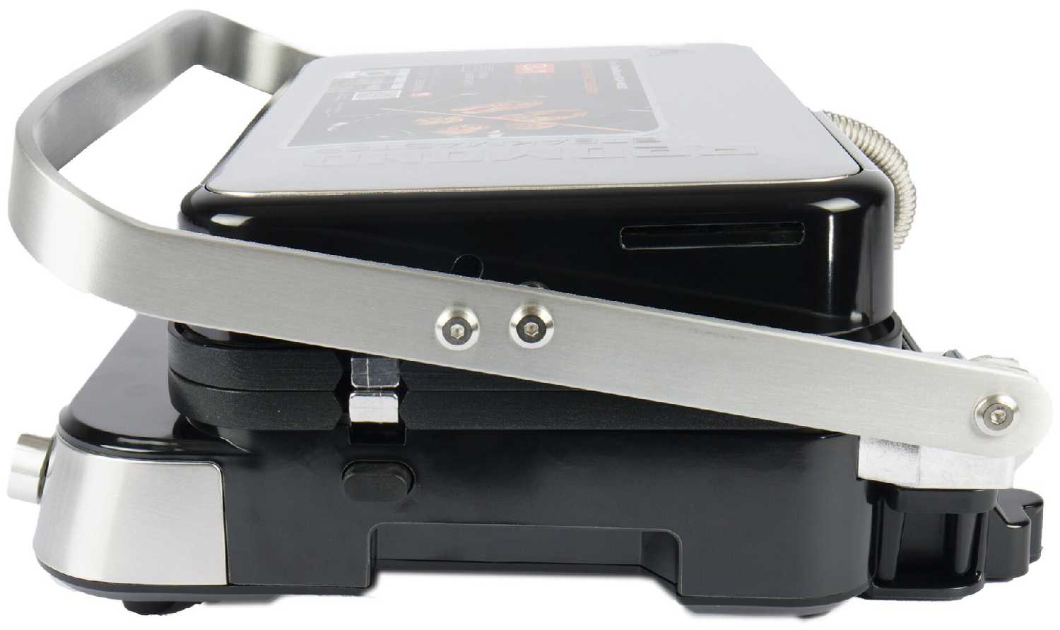 - В открытом положении (180°) имитирует барбекю, позволяя одновременно готовить крупные порции.