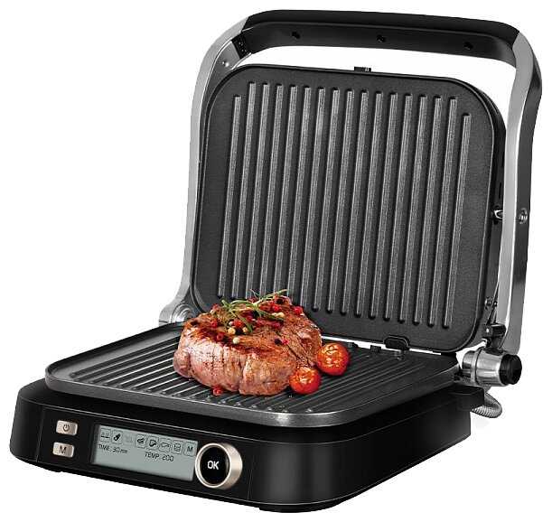 - + Разные режимы, съемные панели. Гриль может автоматически определять время приготовления по весу продукта