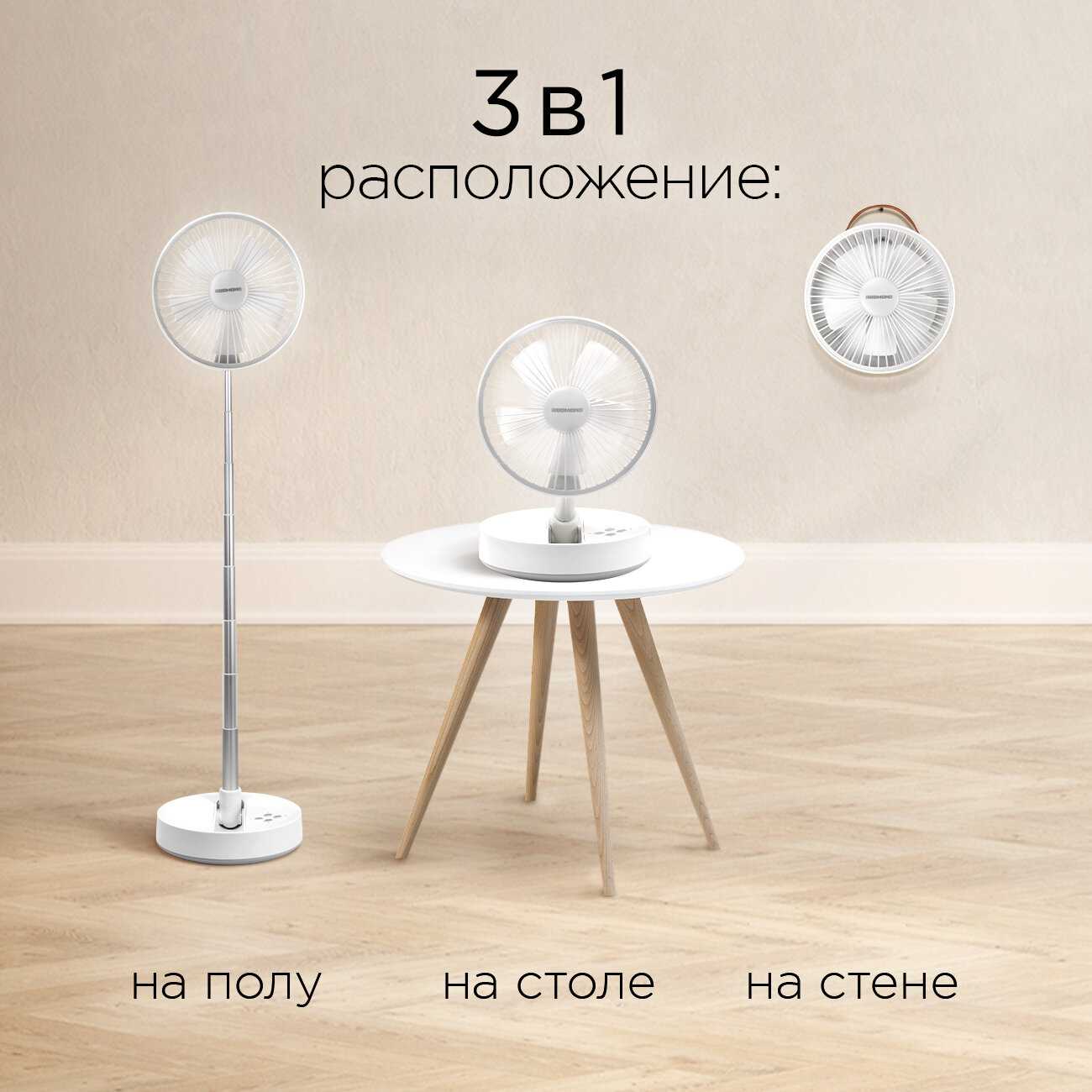 Адаптация под сезонные потребности: Летом основной режим эксплуатации — охлаждение с частым перемещением между комнатами. В отопительный сезон прибор компенсирует духоту от радиаторов без необходимости открывать окна. При весеннем/осеннем использовании минимальная скорость предотвращает переохлаждение. На дачах сезонное хранение в сложенном виде экономит пространство кладовых. В межсезонье настенное крепление служит постоянным местом размещения без необходимости уборки.