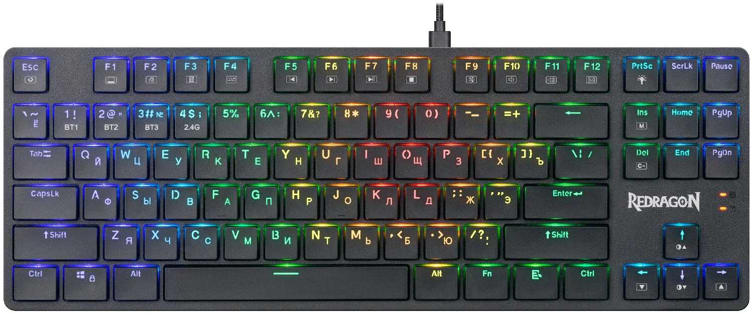 - Отсутствие цифрового блока (TKL) экономит место, подходит для небольших столов.