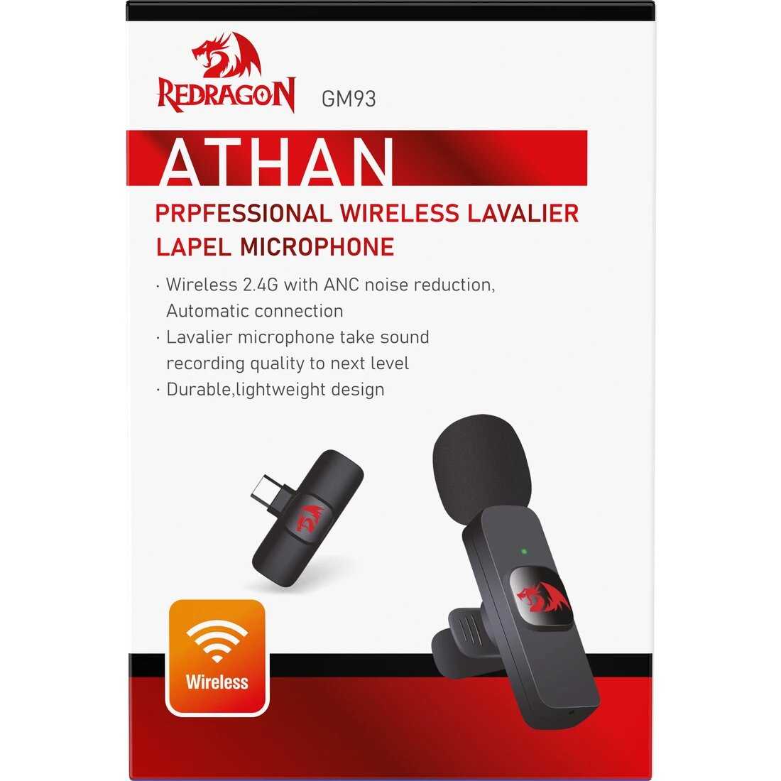 Отзывы о Микрофон Redragon Athan GM93 [петличка, USB-C, 2.4G]