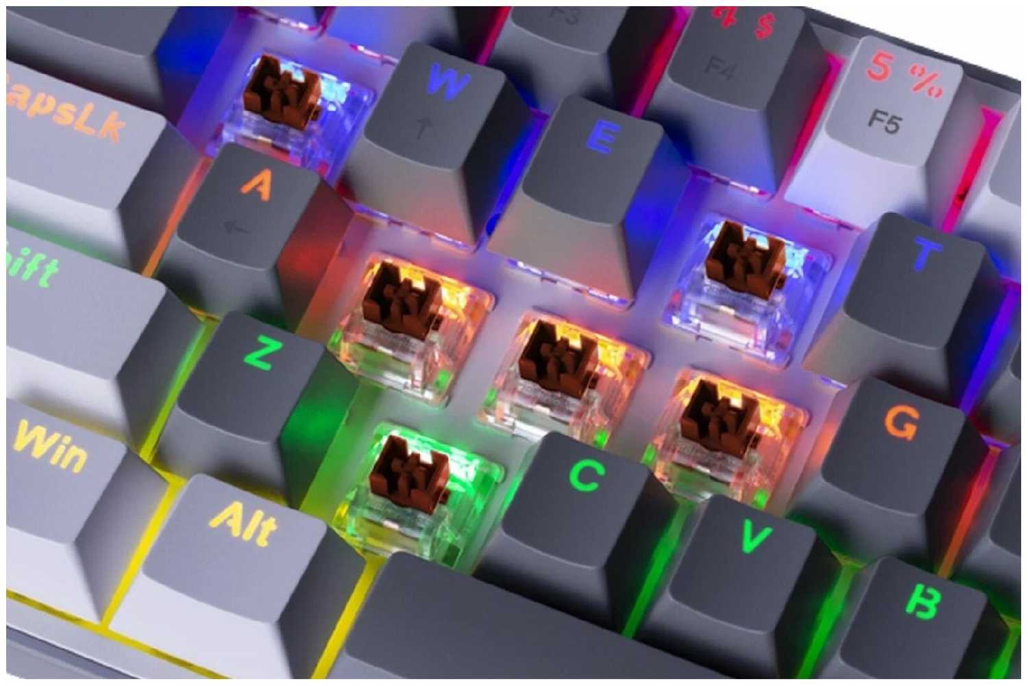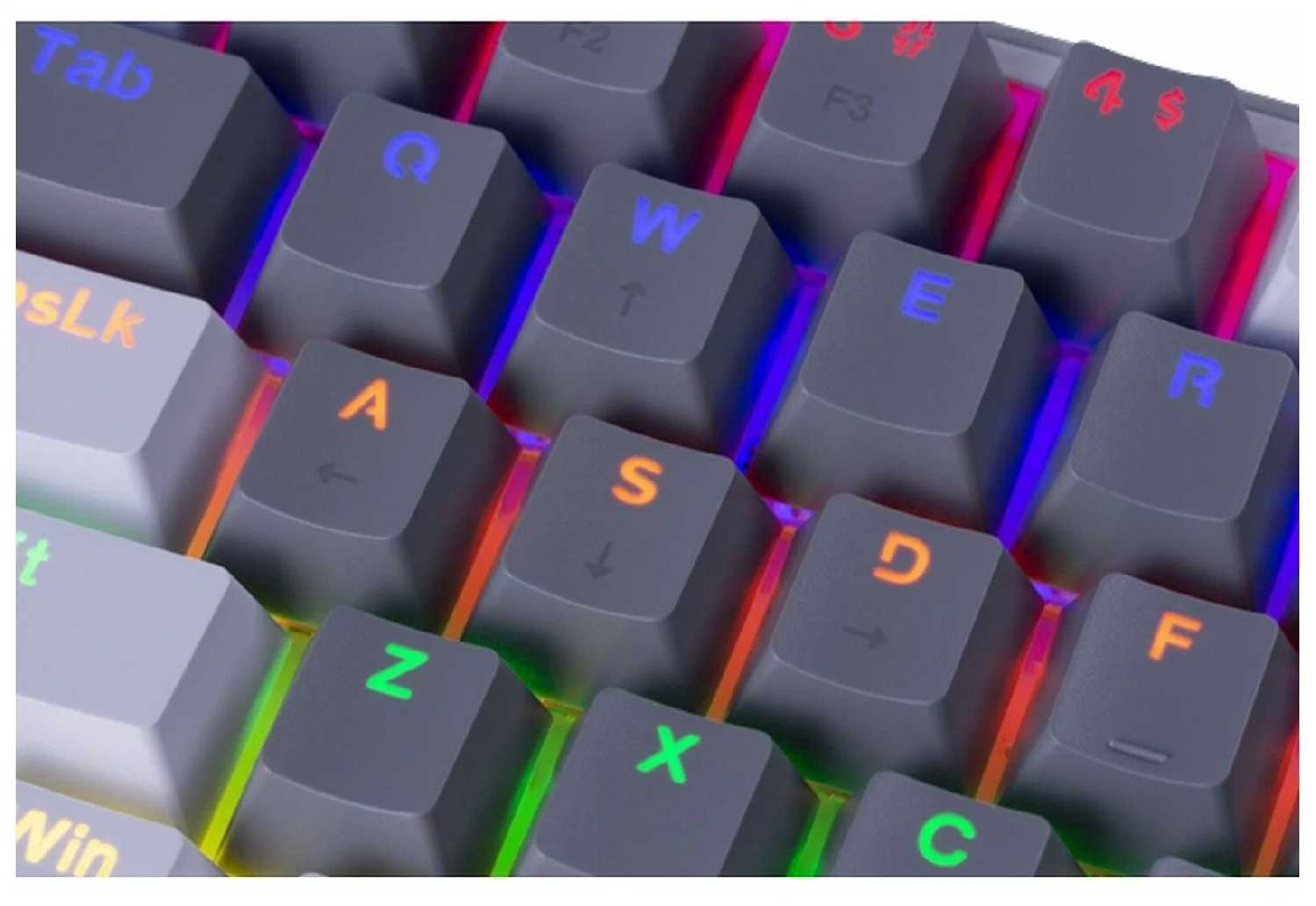 Подсветка статично закреплена за каждой клавишей в радужном спектре (не RGB). Яркость регулируется сочетанием Fn + Пробел, но смена цветовой схемы недоступна — исключение составляет красная подсветка на клавише Num Lock при активации нумпада. В моделях Fizz RGB доступно ПО для кастомизации, но для «Rainbow»-версий оно не работает. -