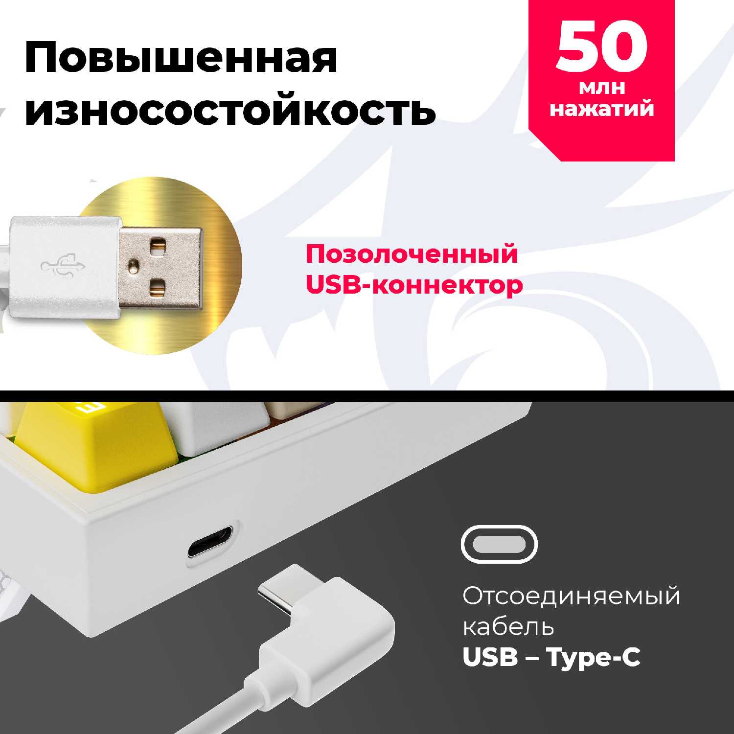 - В комлекте идут сменные кейкапы (противоположного цвета от тех, что уже установлены в клавиатуре)