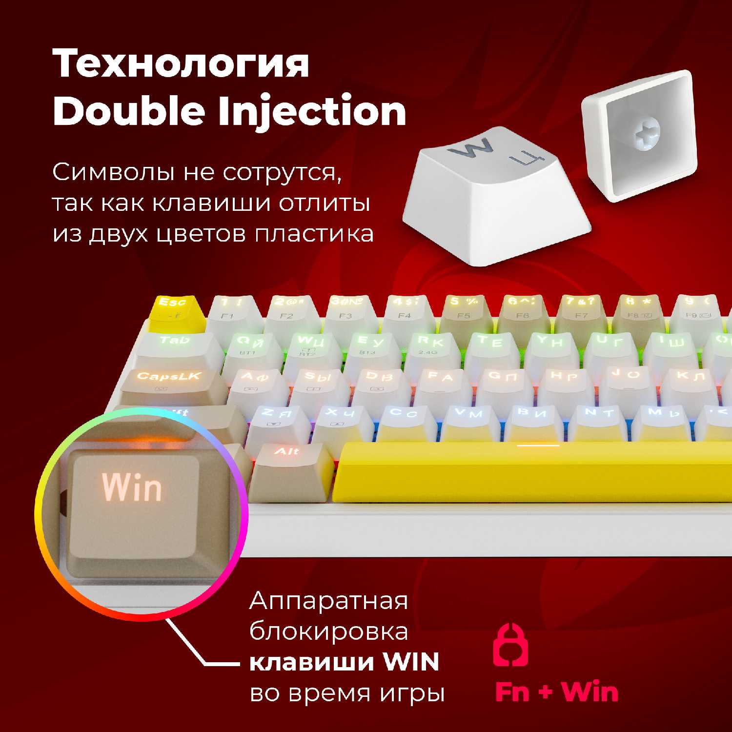 - В комплекте два набора кейкапов (розово-белые/бело-розовые/однотонные), позволяющие кастомизировать цвет сразу из коробки.