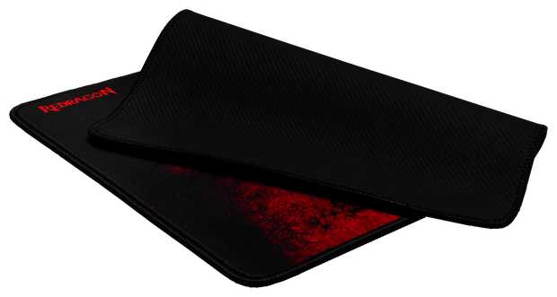 - Коврик большой, тканевый с прорезиненной основой, быстро распрямляется и обеспечивает хорошее скольжение мыши.