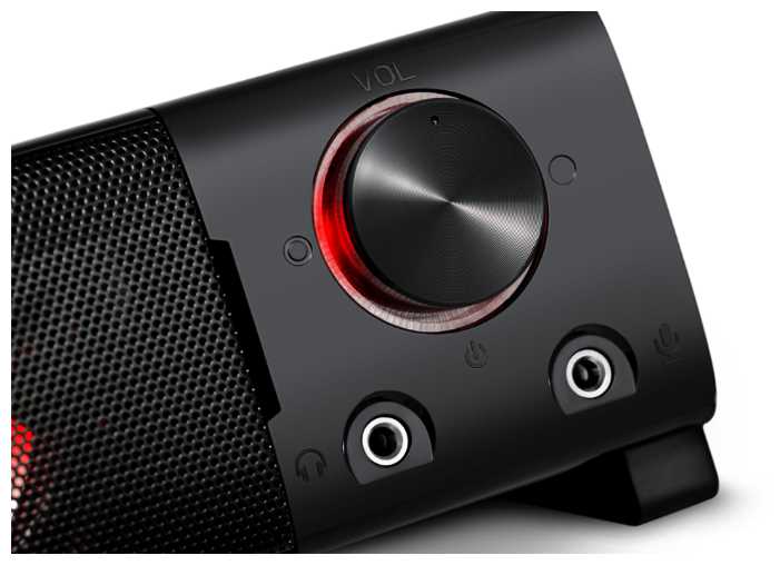 - + действительно качественные и красивые колонки. ожидание было ниже, чем в реальности. звук реально стерео и действительно при разведенных колонках звучит объёмно. Хотя не для аудиофилов, но для кино и игр отличный! красивый внешний вид с глубокой тёмно красной подсветкой ( очень нравится), мягкий и приятный ход воротка громкости, как у профессиональной техники. +возможность внешнего подключения наушников и микрофона, чтобы не лезть в системник (удобно) + возможность трансформации в единый модуль. но нам не зашло, т. к. из-за подставки монитора под самим монитором модуль колонок не умещается, да и звук круче с разведенными колонками.