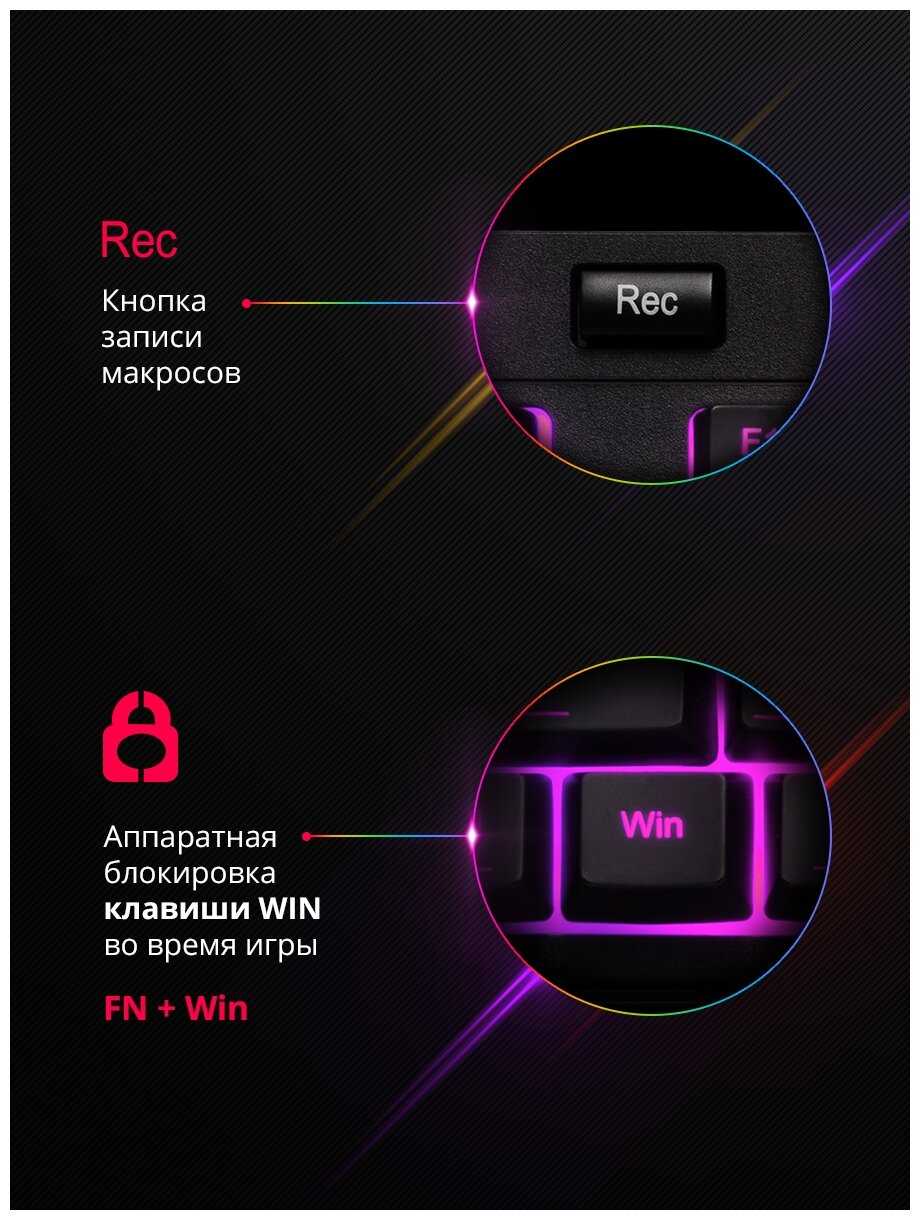 - 6 макроклавиш (G1-G6) позволяют назначать комбинации для игр и работы.