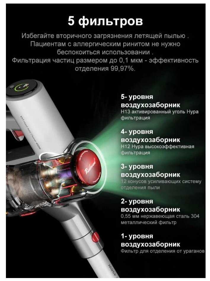 - Эффективная система фильтрации с HEPA-фильтром: