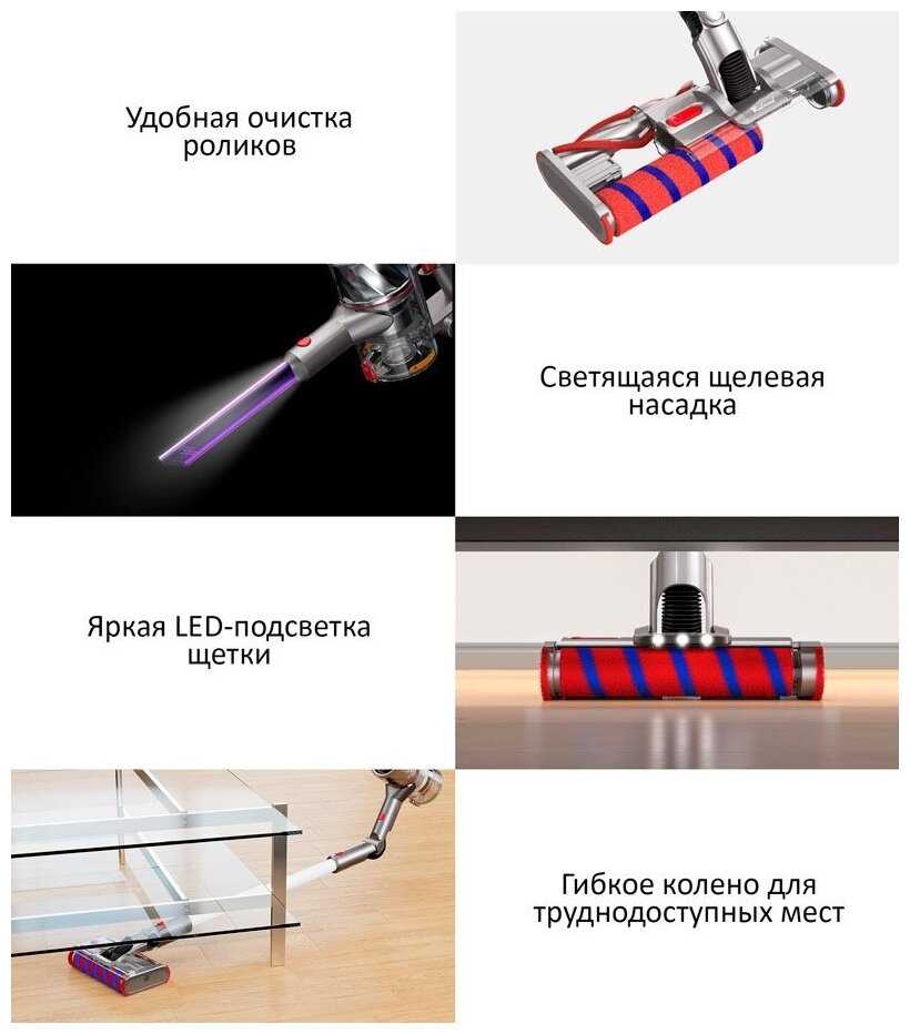 - Щелевая насадка с подсветкой упрощает уборку углов и плинтусов.