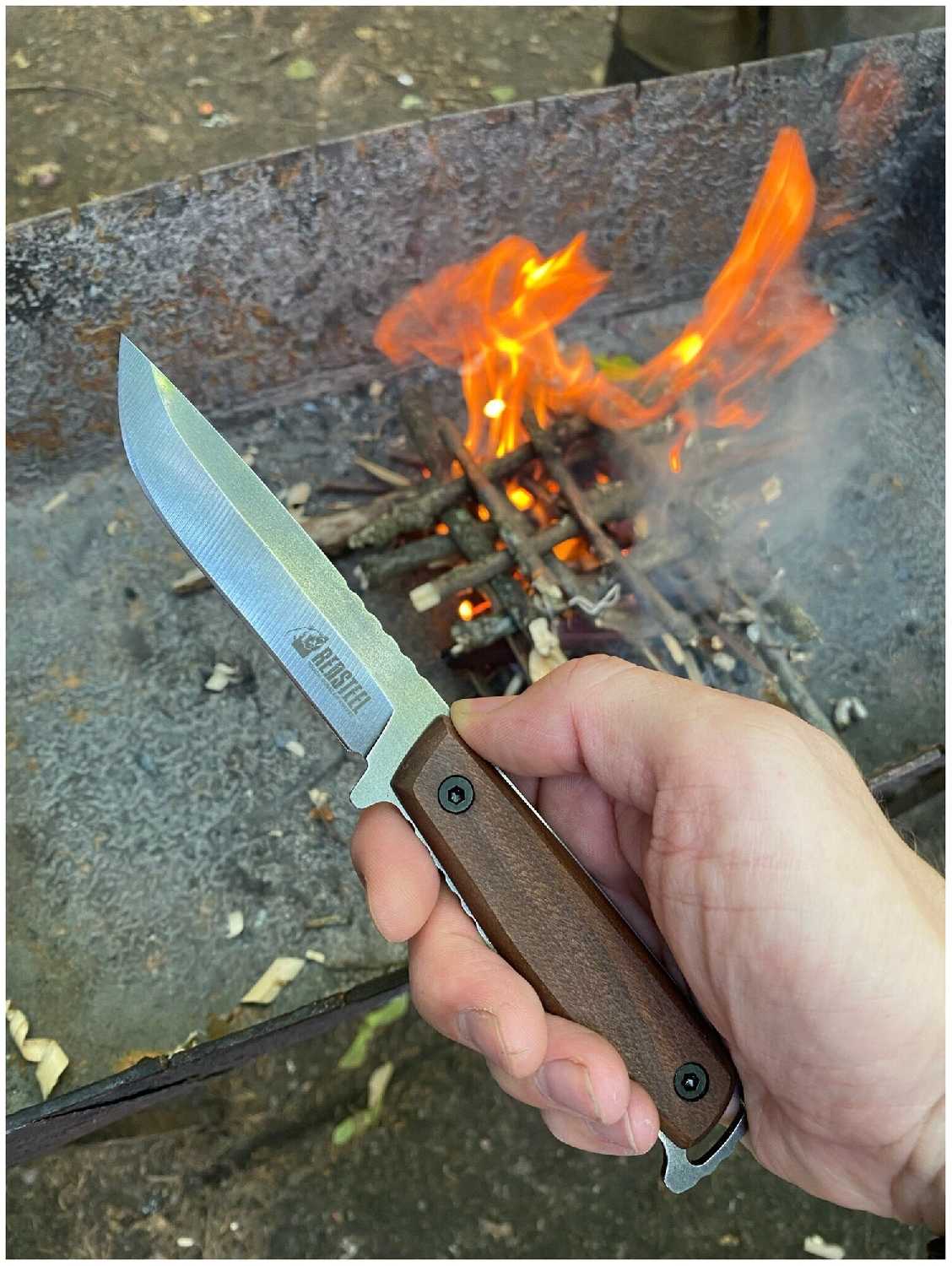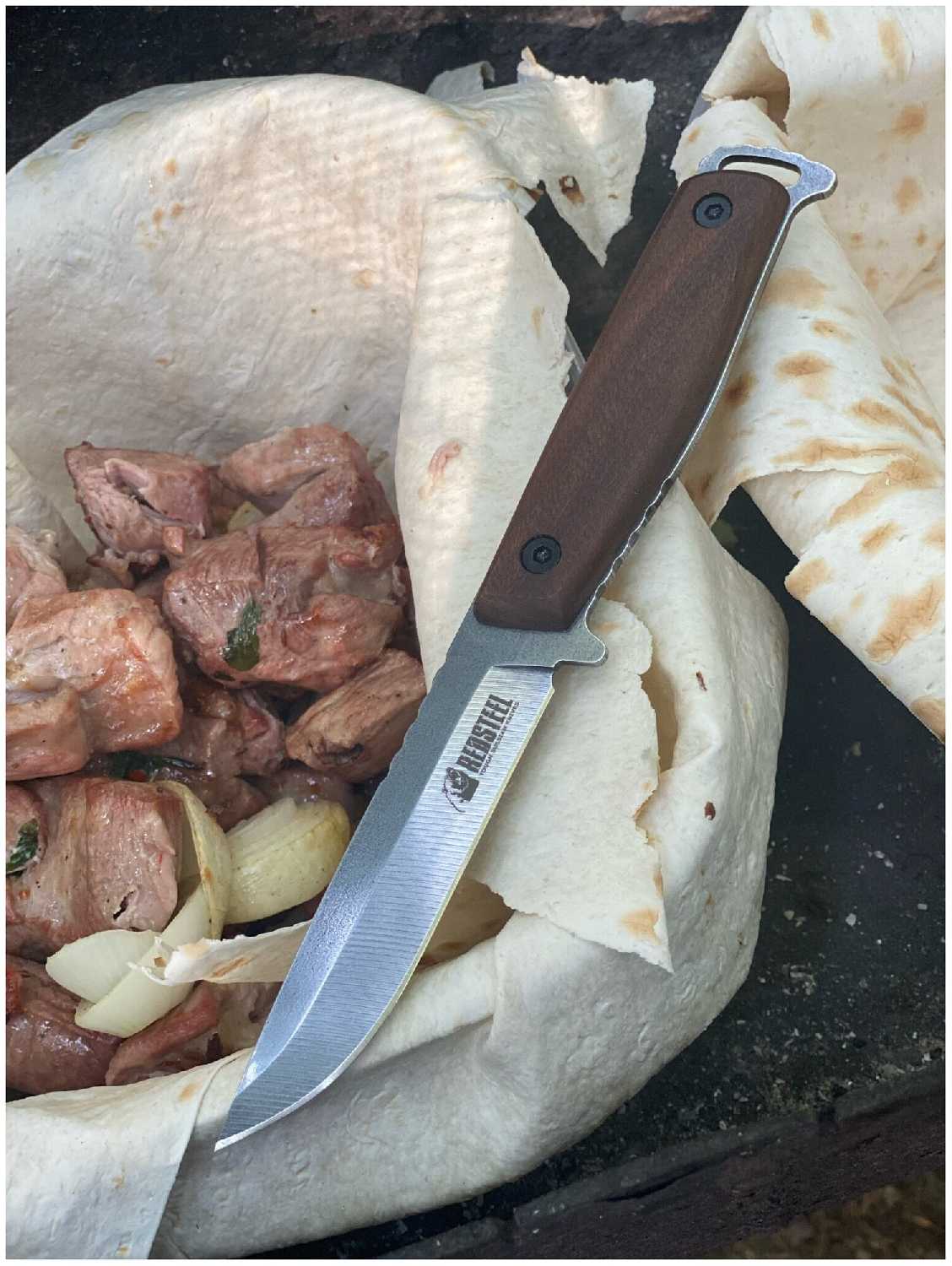 Обыкновенный простой нож,который и выглядит хорошо, и порезать продукты одно удовольствие. Разумеется не для экстремальных условиях чтобы им пилить деревья и метать для этого есть специализированные инструменты.