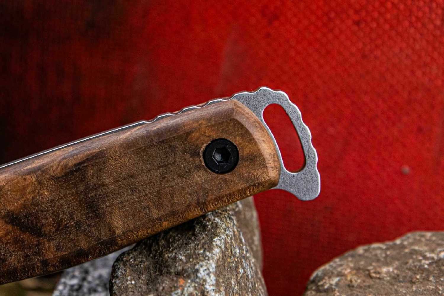 Очень простой и надежный, удобный в работе. Неплохая сталь (в данном случае 420HC), рукоять - кавказский орех. Как написал один хороший человек в комментариях, "наш ответ Море")