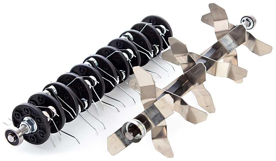 Замена валов занимает 1-2 минуты благодаря продуманной системе креплений. Пользователи называют процесс интуитивно понятным, но отмечают, что механизм не идеален: хотелось бы более быстрой фиксации "в одно движение". Ножи скарификатора остаются острыми даже после обработки запущенных участков, а аэрационные спицы не забиваются травой. -