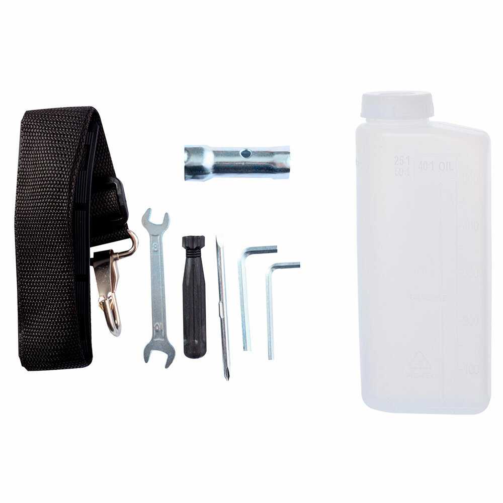 | Подробная комплектация : | Защитный кожух - 1 шт. Наплечный ремень (одинарный) - 1 шт. Шпулька с леской - 1 шт. 3-х лопастной диск - 1 шт. Ёмкость для приготовления топливной смеси - 1 шт. Крепёж - 1 комплект Нож к защитному щитку - 1 шт. Шестигранный ключ - 2 шт. Гаечный ключ - 1 шт. Свечной ключ - 1 шт. Отвёртка - 1 шт. Инструкция по эксплуатации Упаковка |