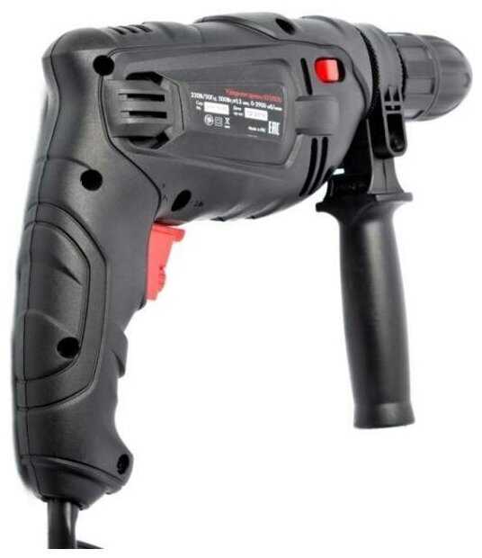 | Особенности конструкции : | блокировка кнопки включения, дополнительная рукоятка, ограничитель глубины сверления |
