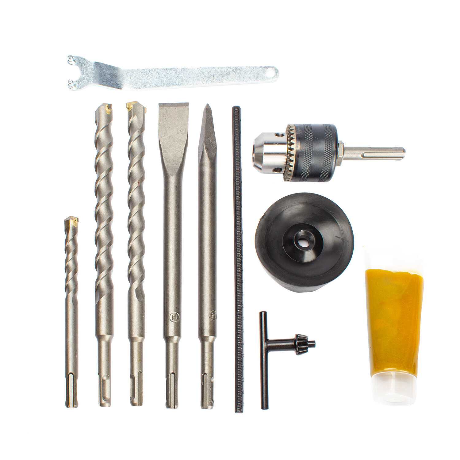 Комплектация : | бур, документация, дополнительная рукоять, зубило, ключ к патрону ЗВП, ограничитель глубины, пика |