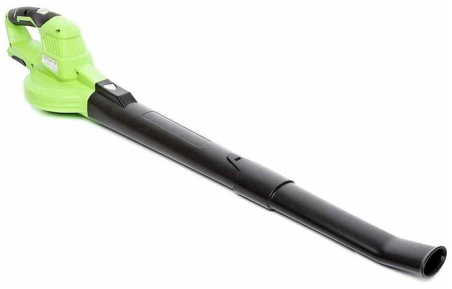 Работаю с ним 2 месяца, очень помогает и экономит моё время. Сдуваю листву с асфальта и короткого газона. С акб 4.0Ач хватает на 38-40 мин работы.