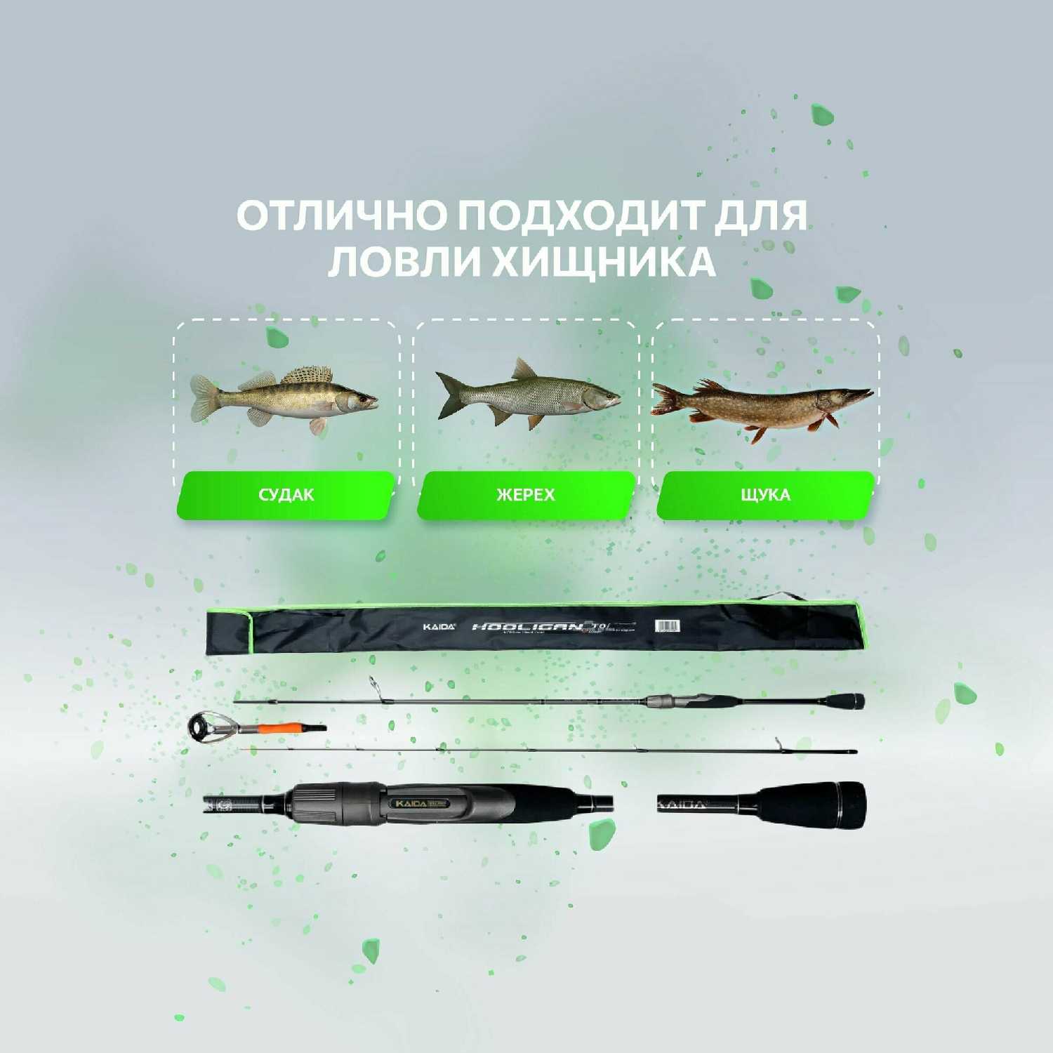 - + Хороший легкий спиннинг. С катушкой 2500 рука вообще не устает, можно кидать целый день. Удобный хват и чувствительное удилище.