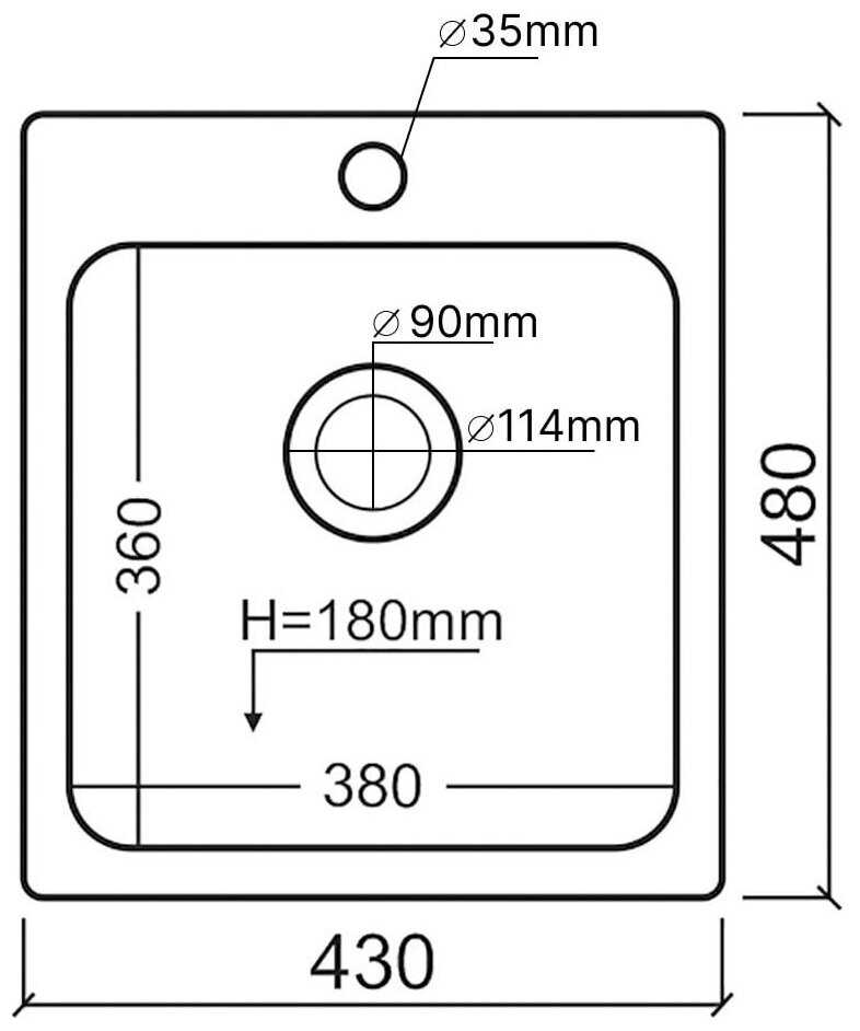 - Размеры 48×43 см (фактические 47.5×42 см) позволяют установить мойку даже в узкие столешницы, сохранив полезное пространство для готовки.