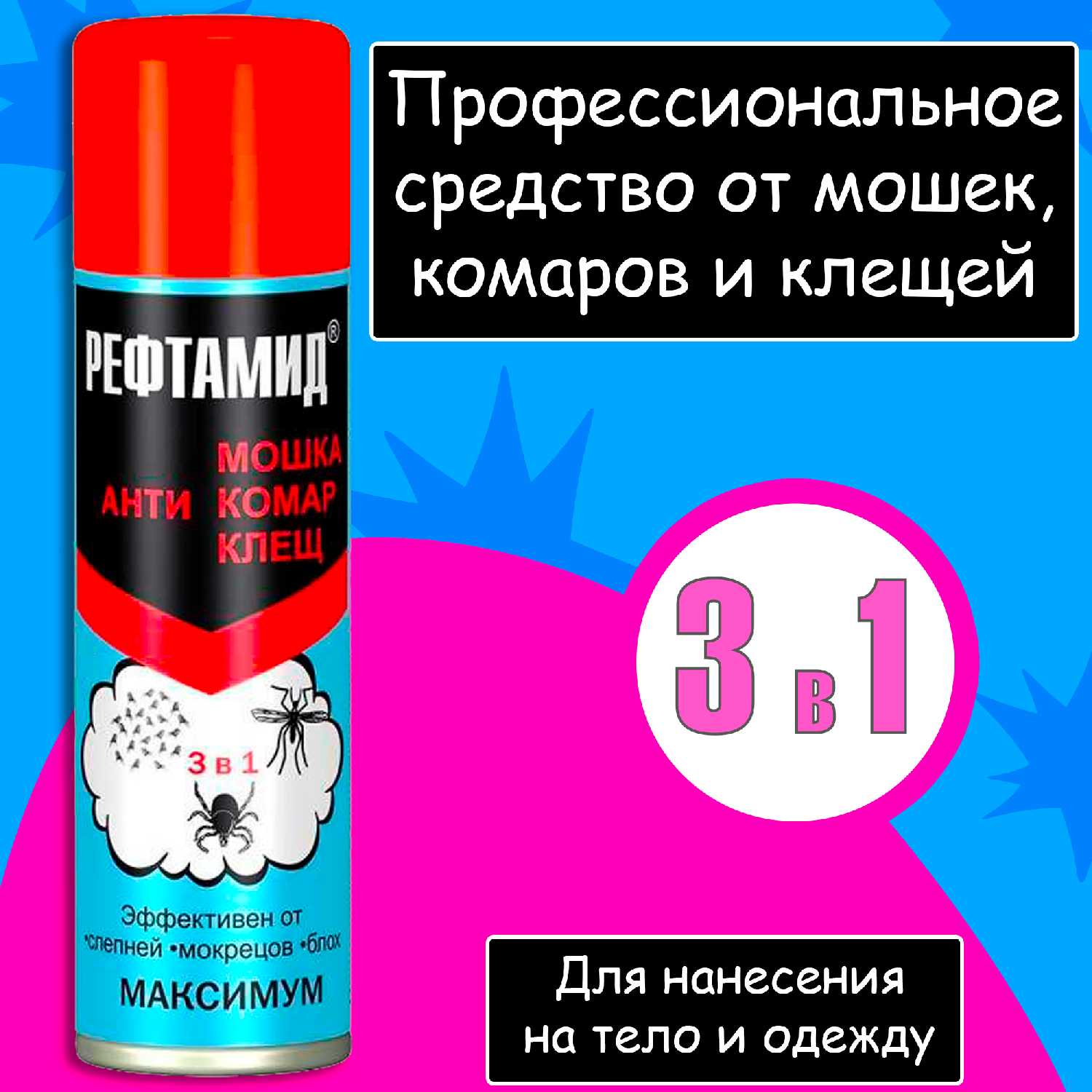 - + Хорошо отпугивает комаров и мошек, совсем в этом году заели. Нашествие в Алтайском крае, в Барнауле всё под чистую в магазинах разобрали от комаров, пришлось на Яндекс Маркете заказывать. Выбрали рефтамид, т. к. годами проверен!