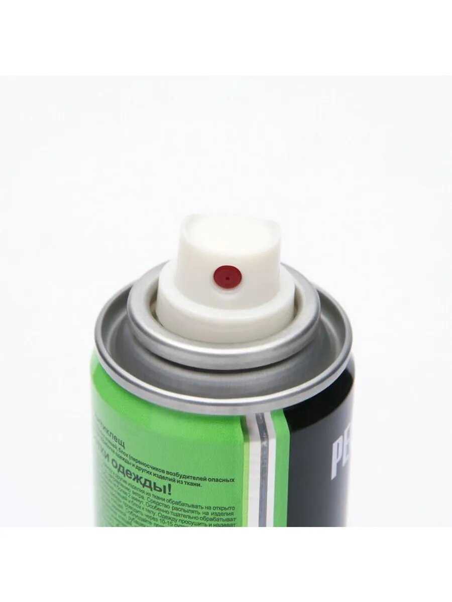 - Баллончик оснащён распылителем, позволяющим обрабатывать одежду, обувь и снаряжение быстро и равномерно.