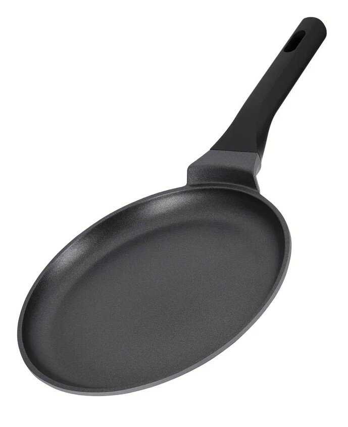 Хорошая блинница, тесто не прилипает. Удобный диаметр- не большой и не маленький. Ручка не греется и не скользит. Рекомендую.