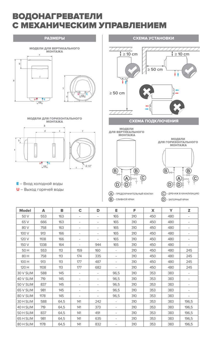 - Габаритные размеры и схема расположения патрубков часто совпадают с предыдущими поколениями водонагревателей и моделями других массивных брендов.