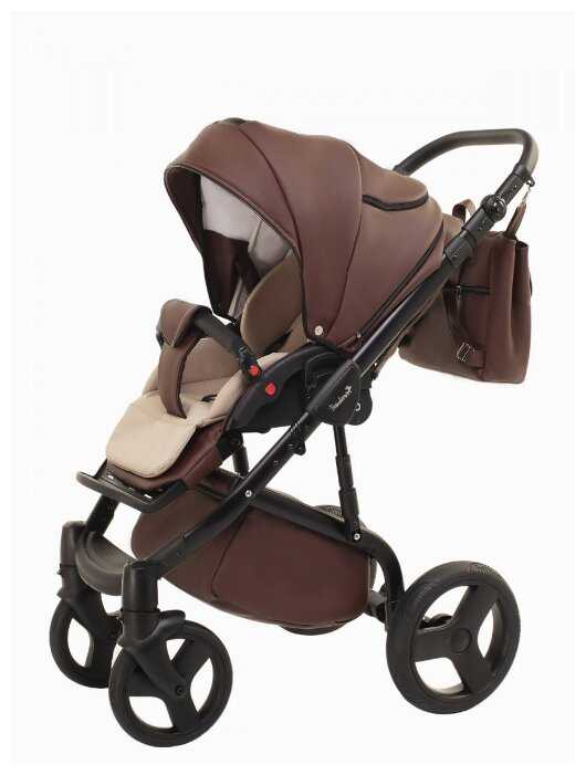 Коляска из эко кожи, ухаживать легко, грязь не впитывается.