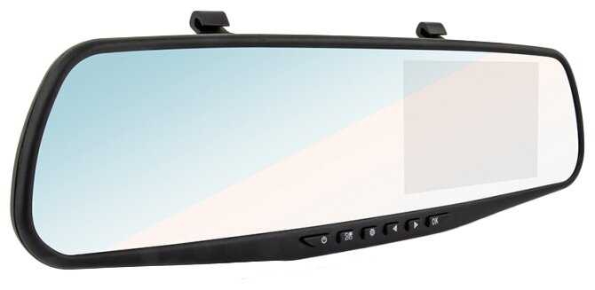 - регистратор в виде зеркала с 2 камерами запись видео 1920×1080 при 30 к/с угол обзора 120° с экраном 4.3" работа от аккумулятора поддержка карт памяти microSD (microSDHC) встроенный микрофон подключение внешних камер