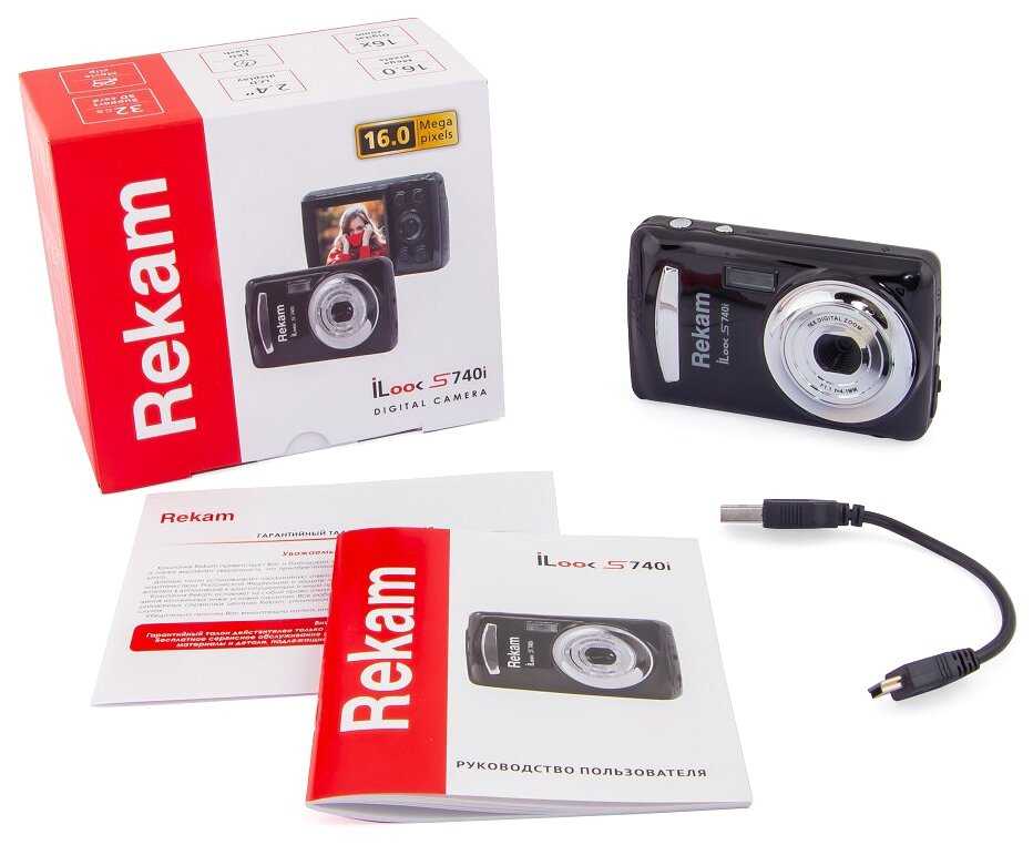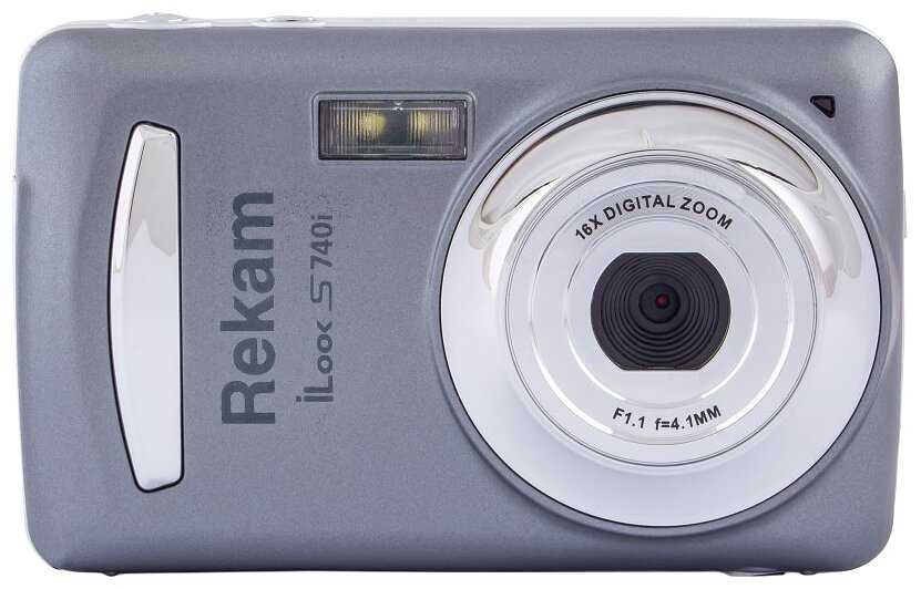 - + Фотоаппарат цифровой компактный Rekam iLook S740i Dark/Gray очень компактный и очень легкий. Можно носить с собой хоть в сумке, хоть в кармане. Объектив аппарата снабжён 16-кратным зумом, качество съемки получается отличное даже на удалении 1.5 метра. Имеется автоматический режим настройки. Можно фотографировать даже ночью, так как дальность действия вспышки до 4 метров. Хорошая вещь за умеренную цену.
