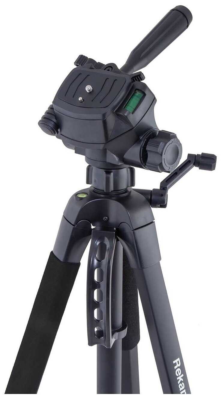 - Штатив позволяет поднимать камеру на высоту до 169 см без центральной штанги, что удобно для съемки с высоких ракурсов.