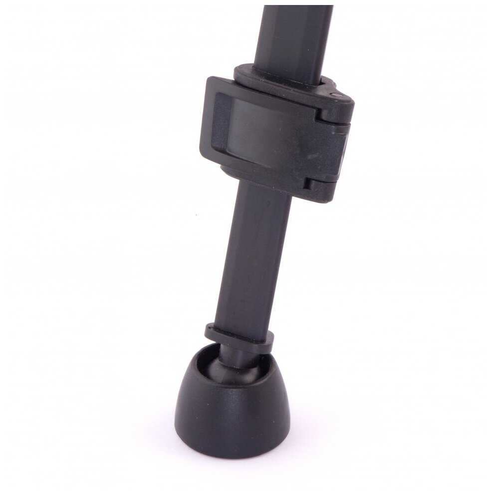 Одна ножка полностью раскладывается с усилием, "голова" сама стоит в наклон, приходится каждый раз регулировать чтобы поймать горизонт