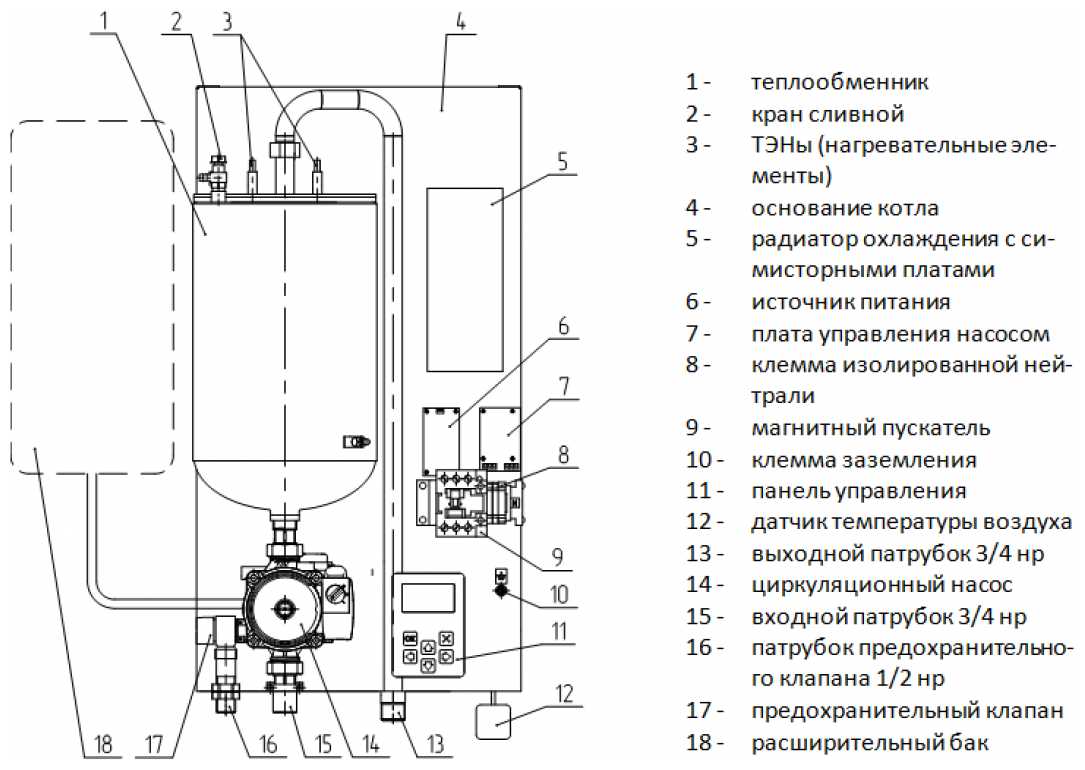 Особенности : | воздухоотводчик, встроенный расширительный бак, встроенный циркуляционный насос, предохранительный клапан, разъем для подключения внешнего управления, термометр |