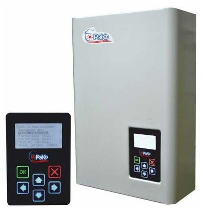 Работает, все внутри (ТЭНы, насос, расширительный бачок, электронное управление). Показывает статистику потребления за месяц.
