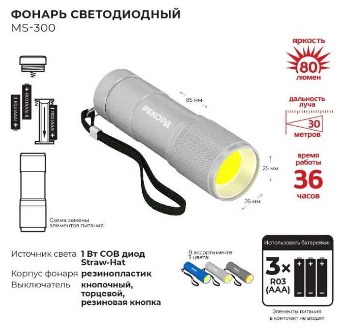 2 отзывов пользователей o Рекорд Фонарь светодиодный "РЕКОРД" MS-300, серебристый