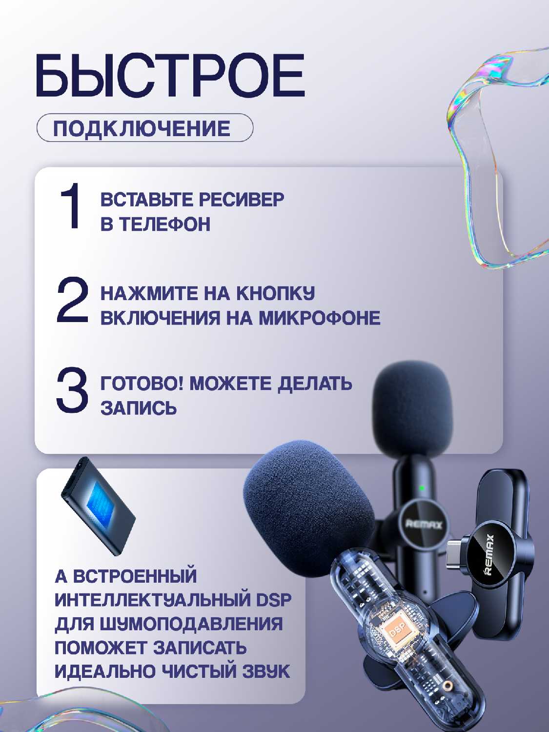Компактная пара петличных микрофонов + приёмник отлично дополнит Ваши видео обзоры, интересные сторисы и веб-конференции
