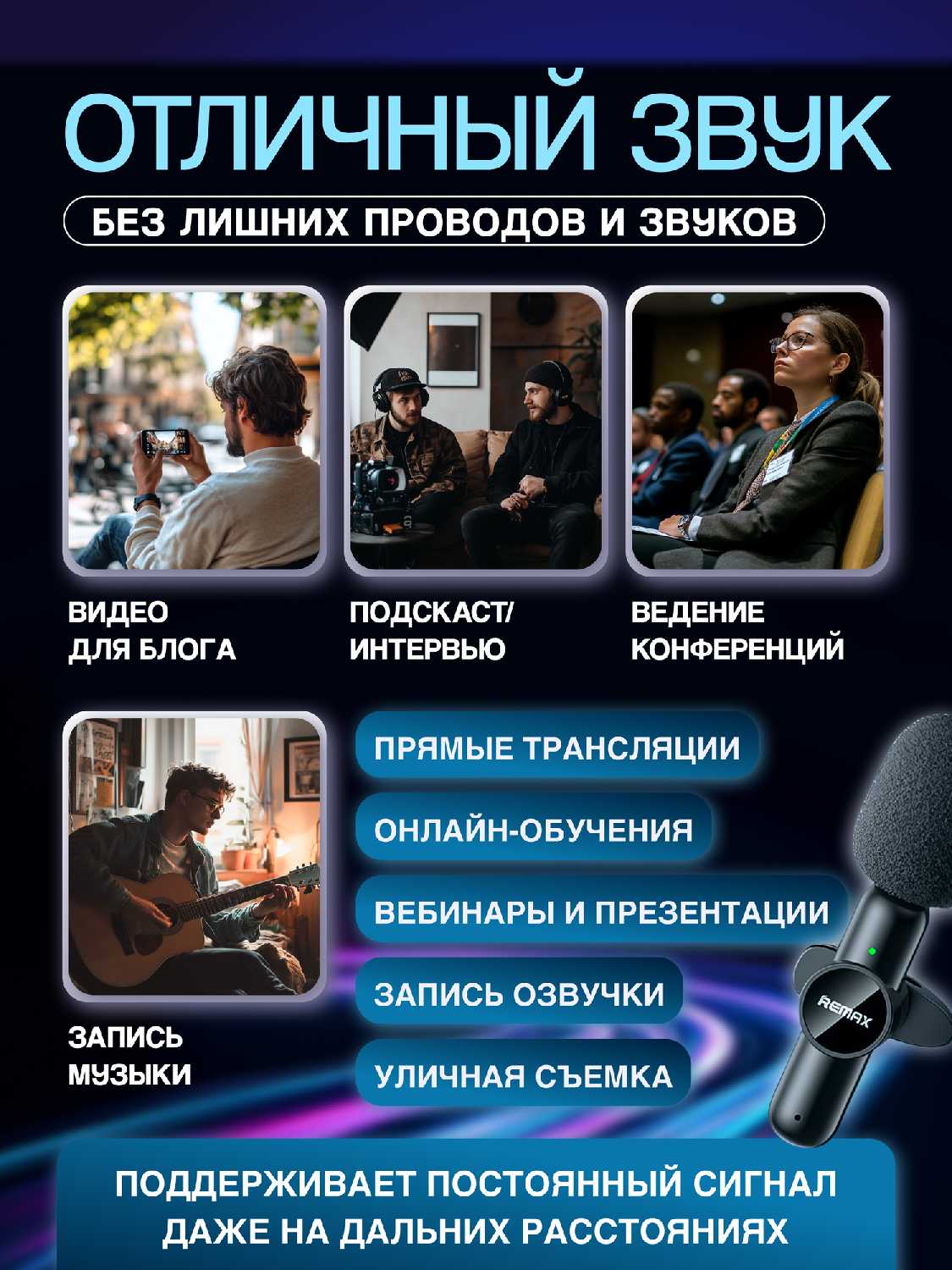| Особенности : | беспроводной микрофон, шумоподавление |