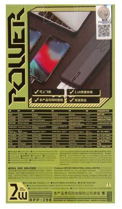 Ну вообще это второй павербанк бренда remax. Один 30000 и вот 50000 взял .часто выезжаю на природу .питают он в основном гирлянды и телефоны .Со своей задачей справляются .правда цена кусается . Надеюсь в бренде я не прогадал .
