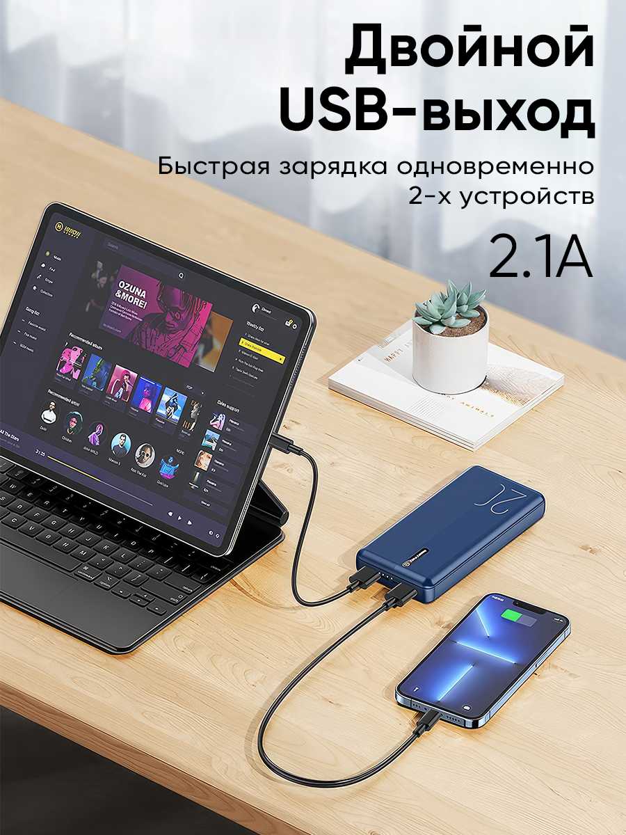 - + Несмотря на небольшую емкость, его достаточно для одной-двух зарядок смартфона, а легкий вес и тонкий корпус делают его идеальным для повседневного ношения. Удобен, практичен и выглядит стильно.