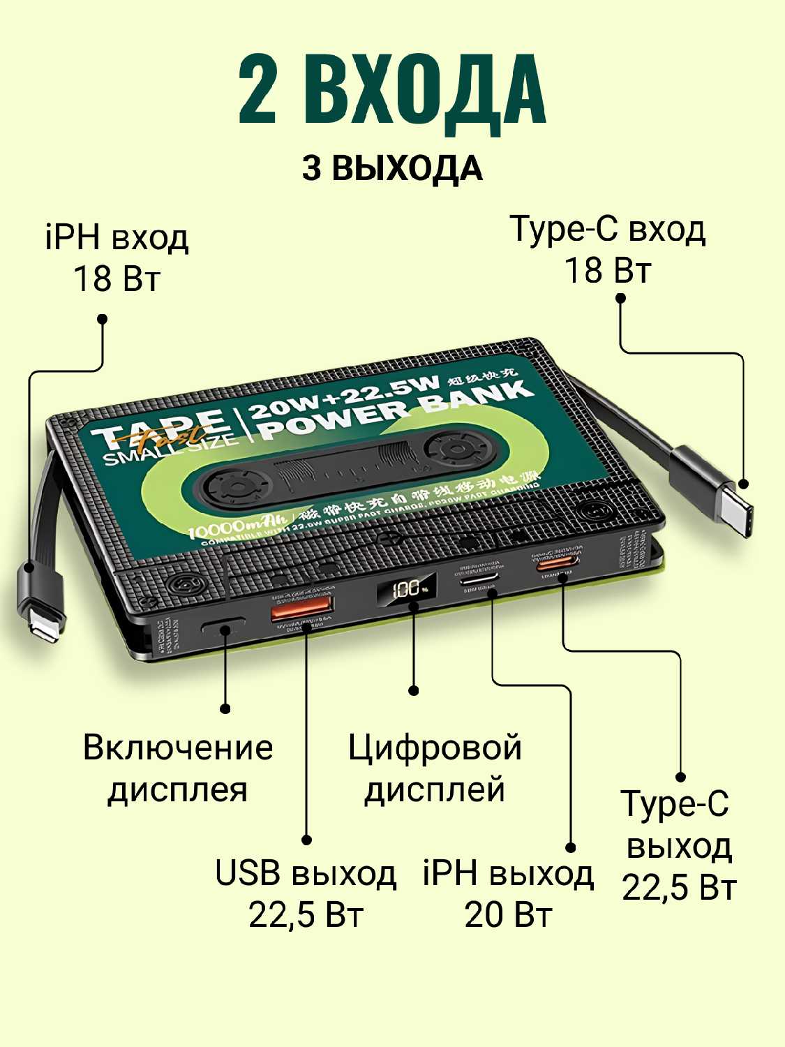 - + Компактный, удобный, хватает на два полных заряда айфон 13, чехол в виде касетной коробочки ухххх (поколение 90-х поймет)