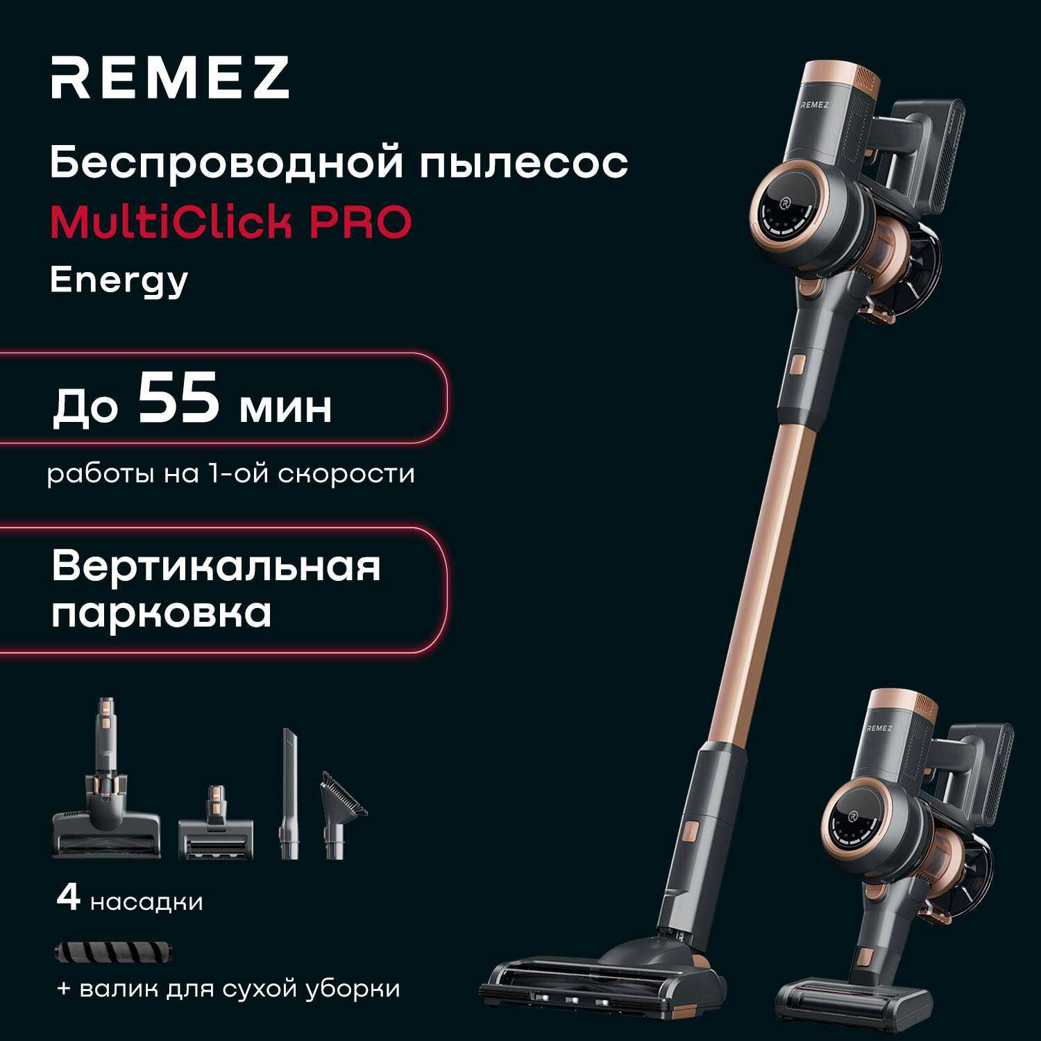 Отзывы о Вертикальный беспроводной пылесос REMEZ MultiClick PRO Energy (RMVC-503B)
