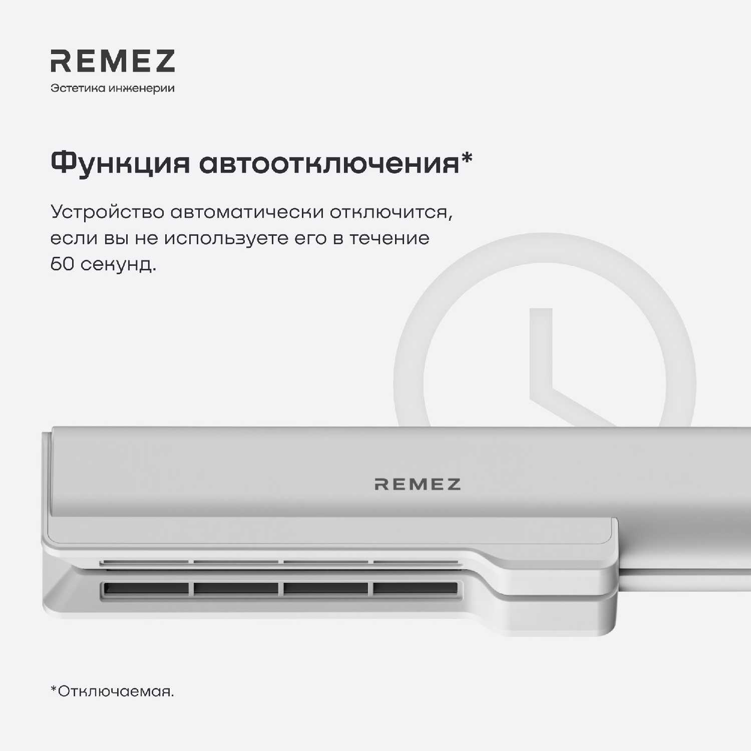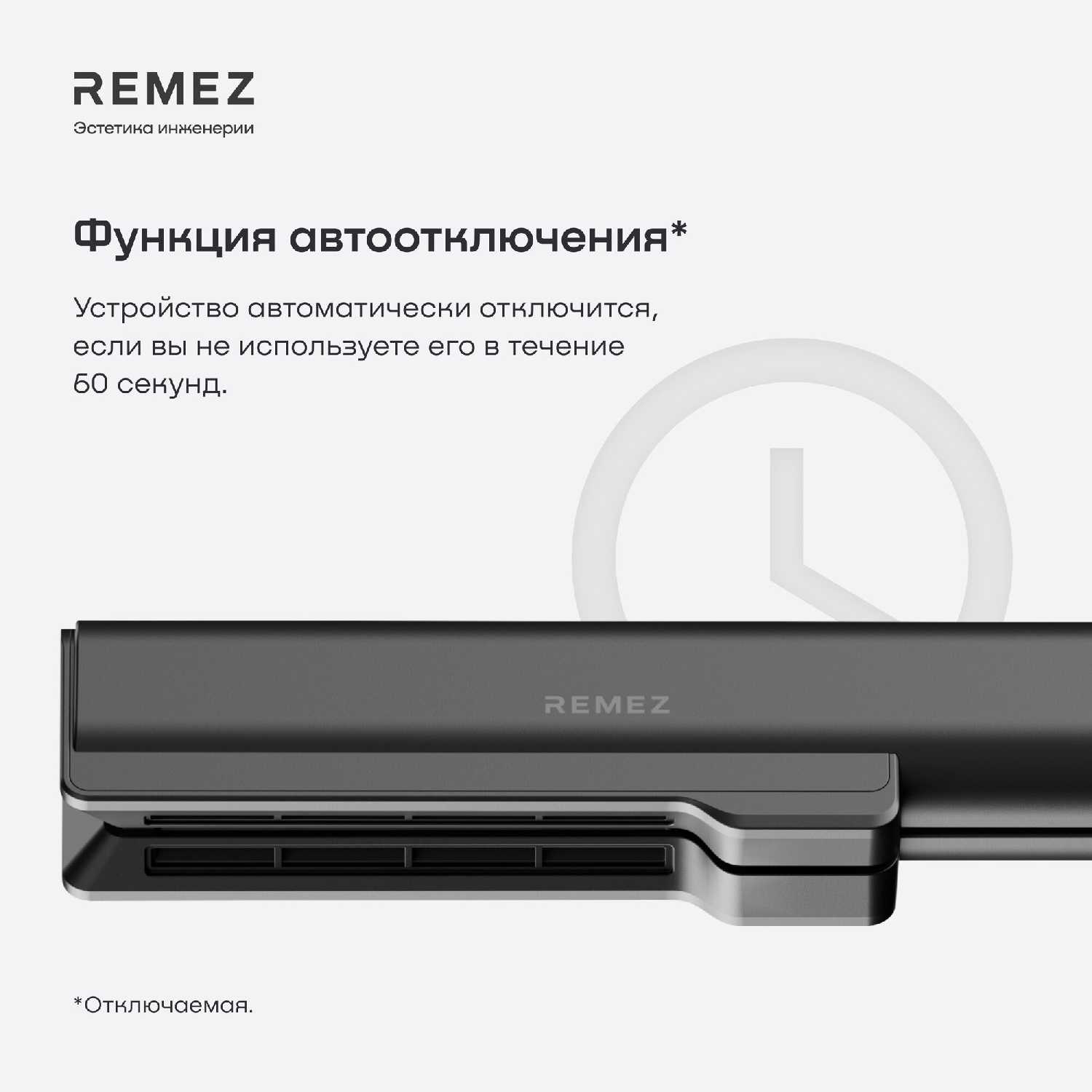 - Автоматическое отключение через 60 секунд бездействия предотвращает перегрев и случайные возгорания.