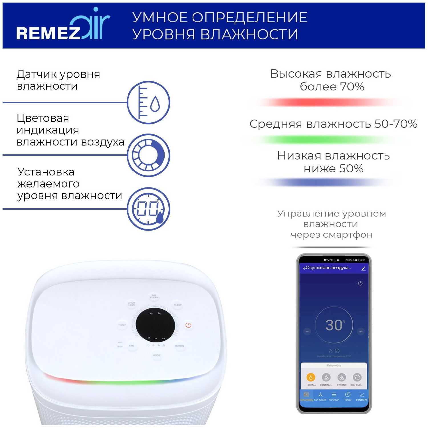 Характеристи Remezair RMD-302 с управлением по Wi-Fi