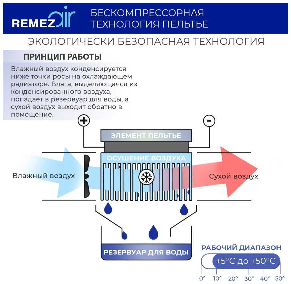 - При температуре ниже +10°C конденсация почти прекращается — в неотапливаемых гаражах или лоджиях прибор бесполезен.