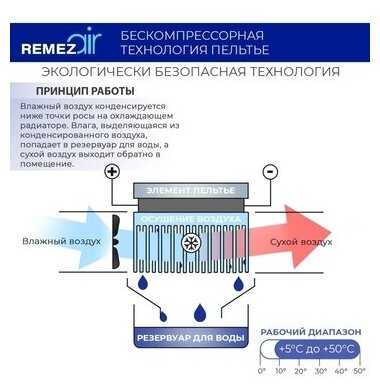 - Эффективное осушение в компактных помещениях благодаря элементам Пельтье и радиаторам: