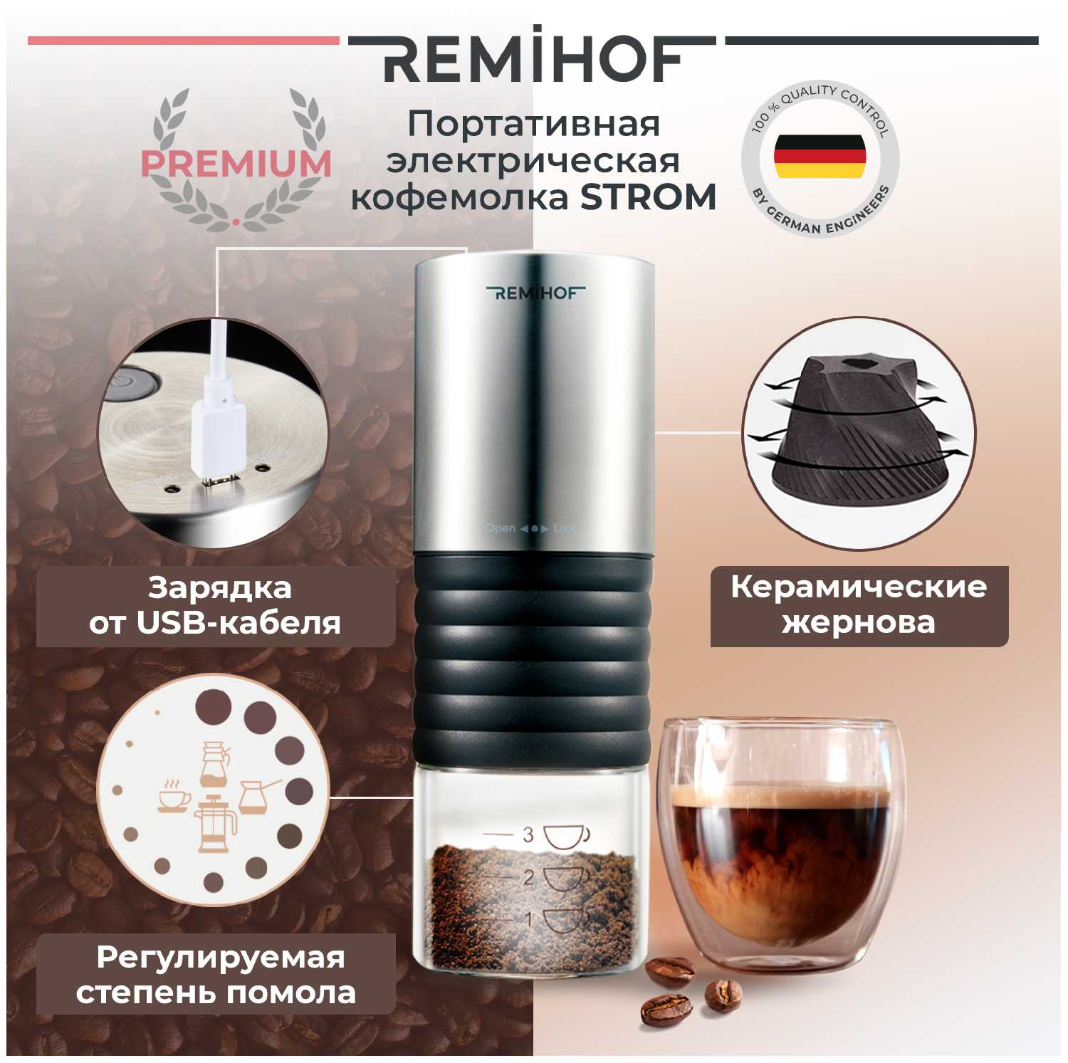 - + настройка помола для зёрен
