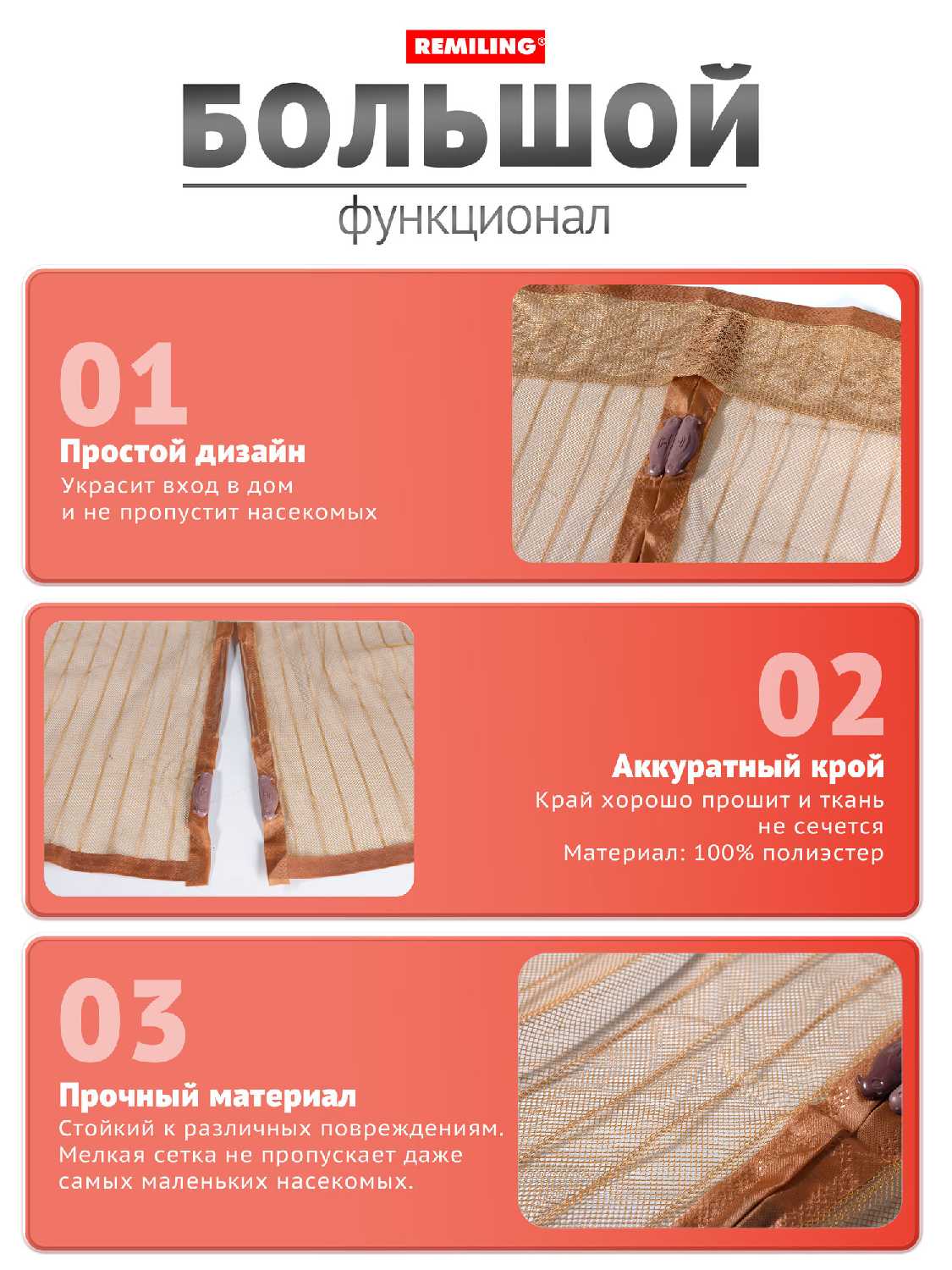 3 отзывов пользователей o RemiLing Антимоскитная сетка надверная с магнитами (90х210см)