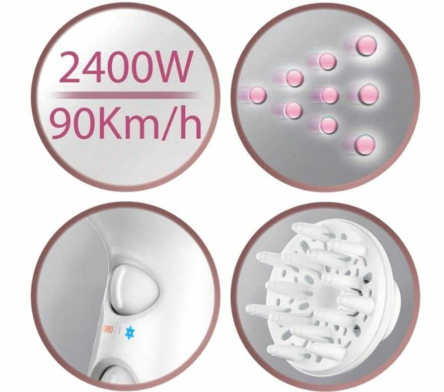 По отзывам пользователей, фактическая мощность ощущается ниже заявленной — около 2000 Вт. Это подтверждается сравнением с предыдущими моделями: владельцы отмечают, что для профессионального использования или густых длинных волос её может не хватить. Однако для бытовых задач (например, волосы до плеч) производительности достаточно, особенно в турбо-режиме. -