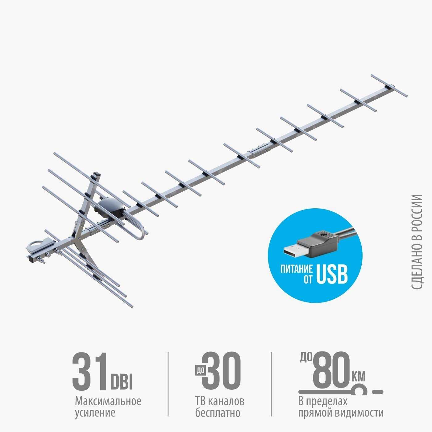 - + Чётко принимает сигнал на 20 каналов, на расстоянии 23 километров!
