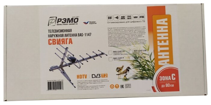 - Требует усилителя для работы через приставку, иначе показывает "база антенны пуста" или ловит только 10 из 20 каналов.