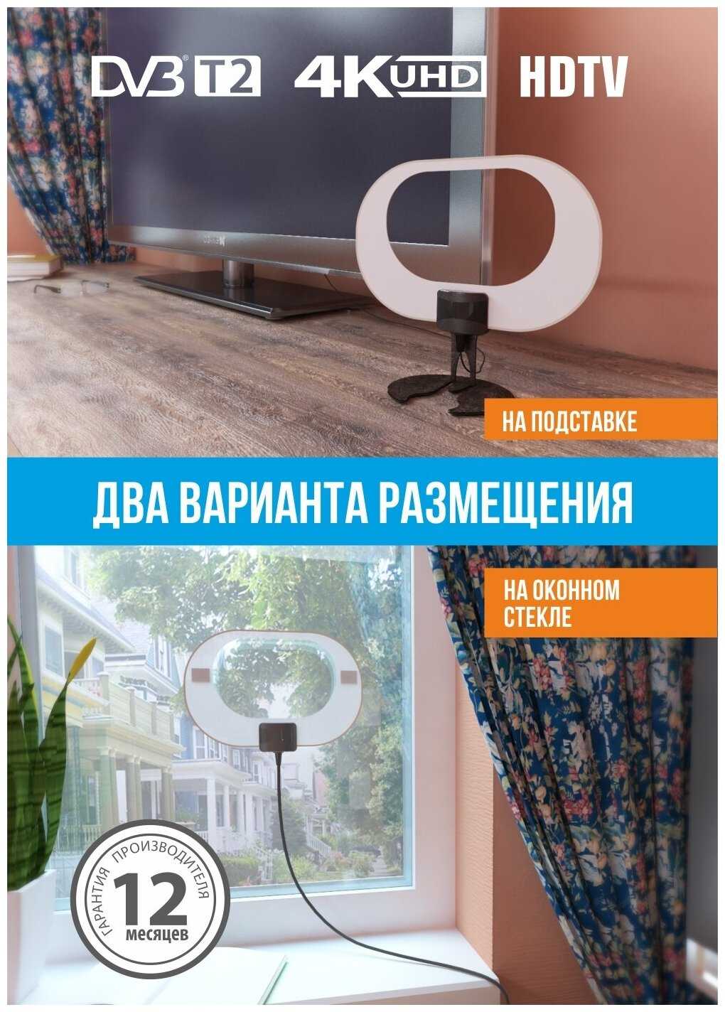 - + Антенна усиленная,используется вместе с цифровым приемником на телевизоре,которому 20 лет.Прием отличный всех 20 каналов в СПб.Таскать по квартире не пришлось,сразу поймала все каналы,будучи прикрепленной к стене.Цена хорошая.